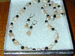 SALE Mother of Pearl, Smoky Quartz and Freshwater Pearls make up this single strand longer necklace. Matching earrings with sterling silver leverback earwires. $45.00 (Longer length approx 24") (Original Price $60.00)